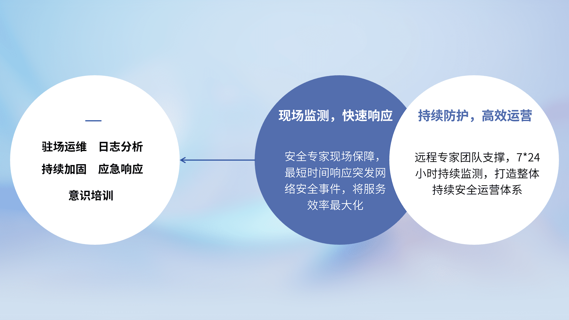 针对客户行业特性,,,,提供专属的一站式安全管理服务,,,,帮助客户全面感知网络空间威胁,,通过安全专家的线上、、线下防护支持,,,实现风险闭环,,,将安全保障常态化,,,,为客户打造常态化安全运维运营服务。。